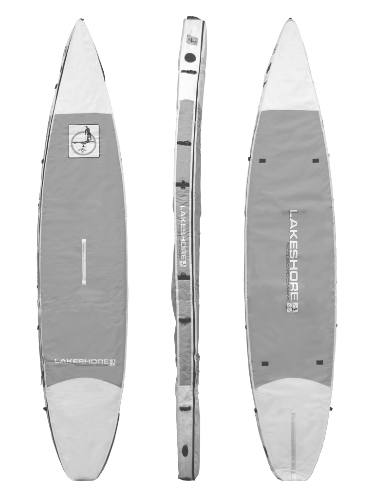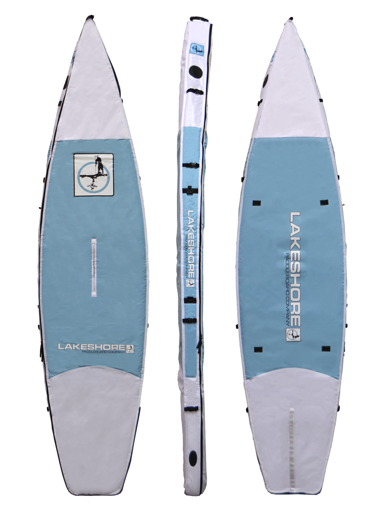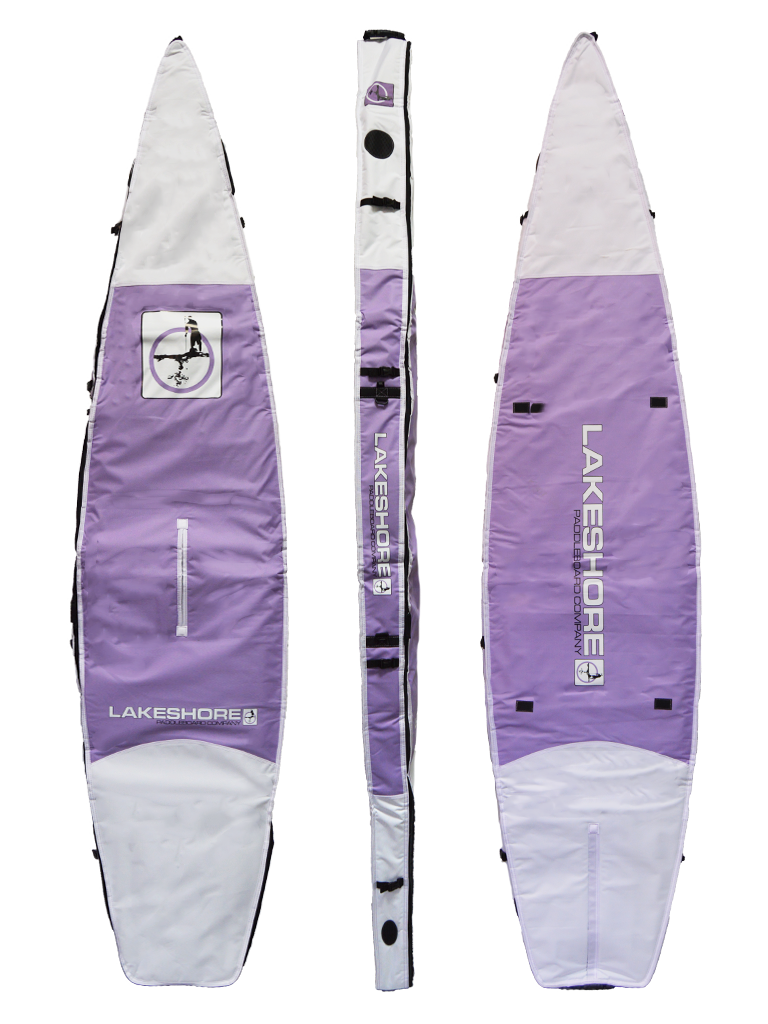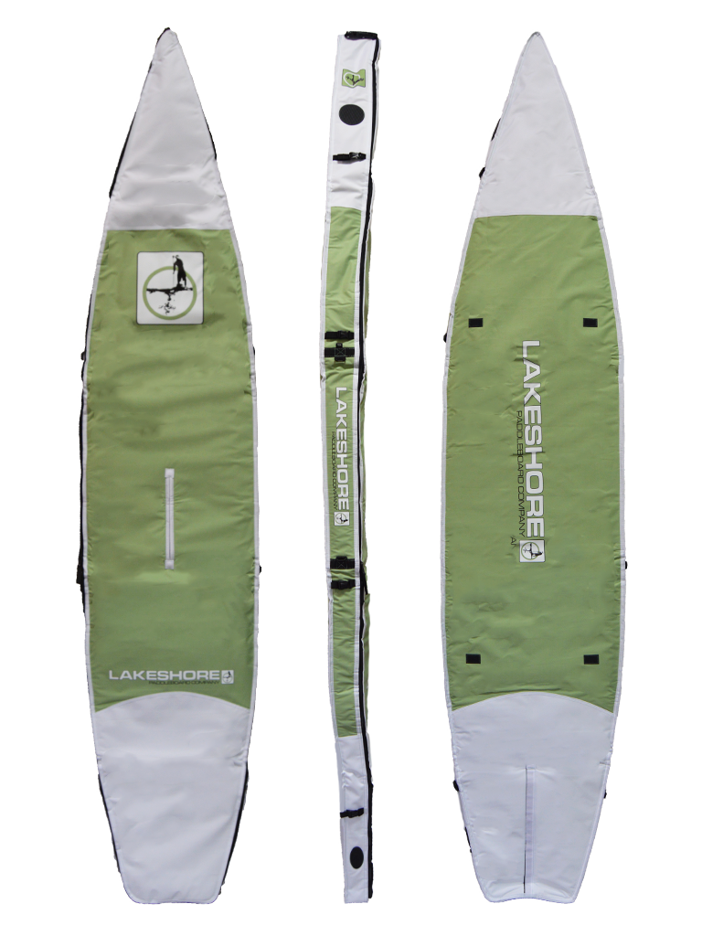 Custom fit to each model size, soft rubber handles on each end, center slot to access board handle, fin slot with Velcro closure, comfortable shoulder strap, 5 cinch straps on each edge, 10mm foam padding, and heavy duty #10 zippers.