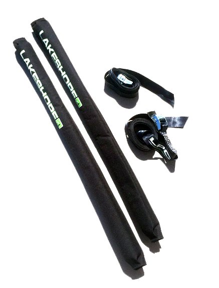 A pair of 32" long foam car rack pads & a pair of 12' long cam straps. Designed to fit round car rack bar system and conveniently packed into a carrying case.
